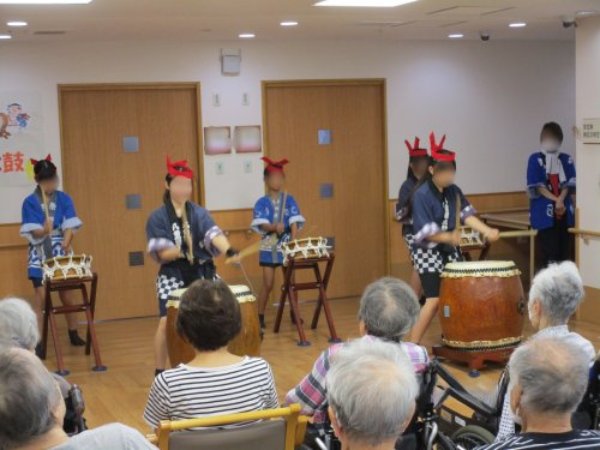 「八重原太鼓」様の演奏と、施設職員と共に踊りを行いました。
