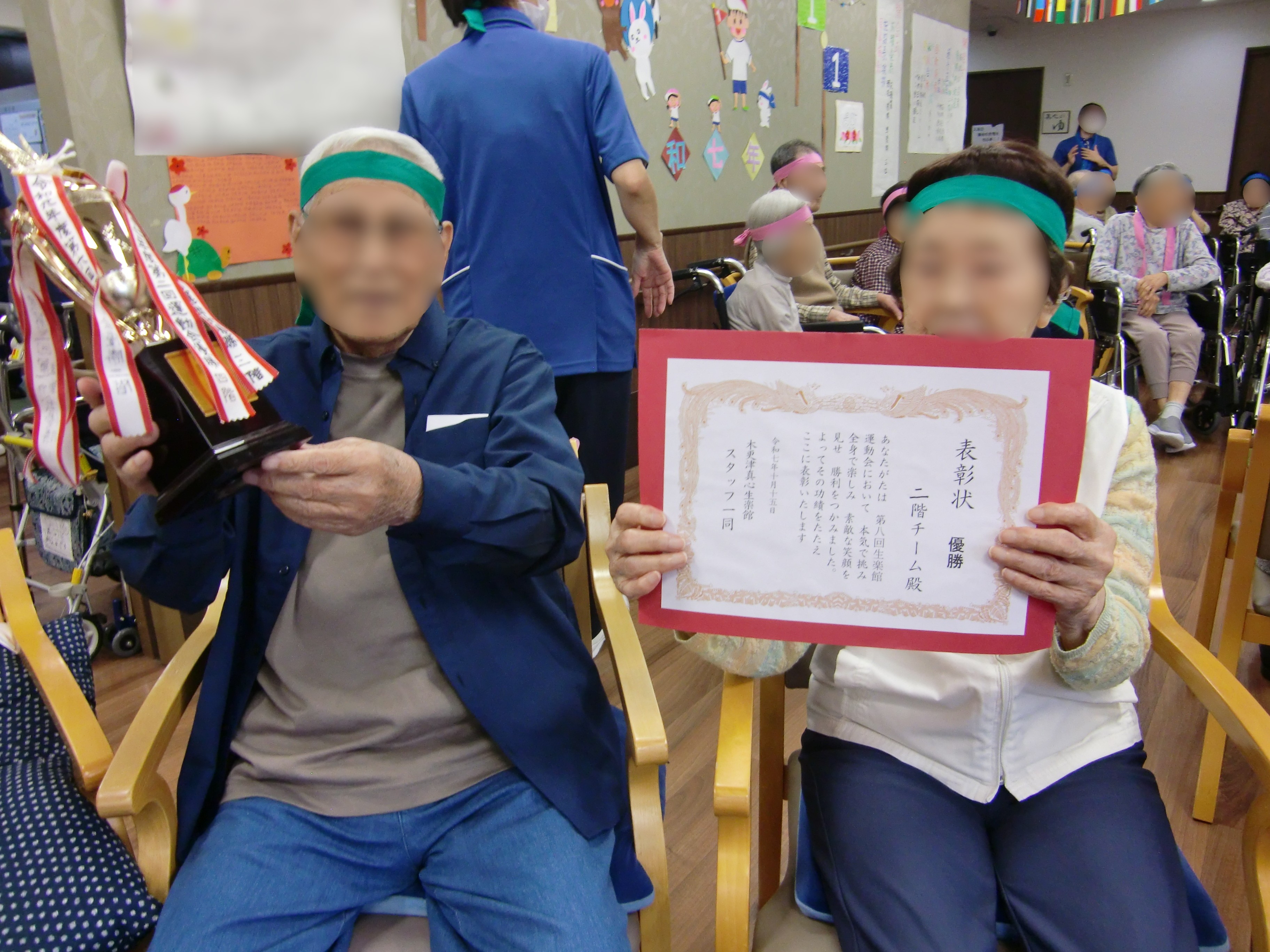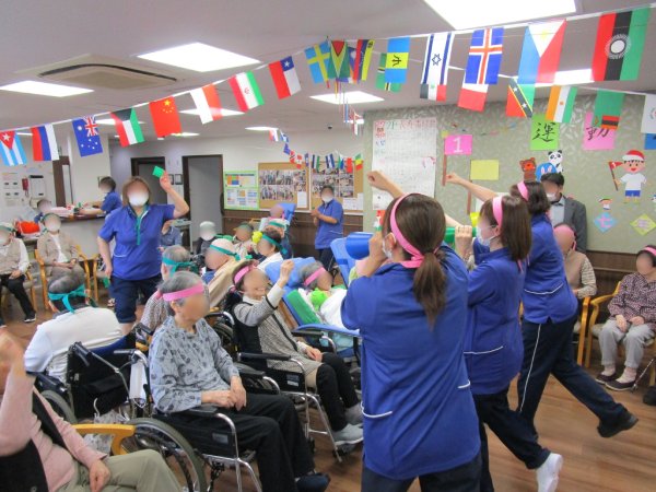 その後、職員と入居者様一丸となり、フロアごとに応援合戦を行いました。