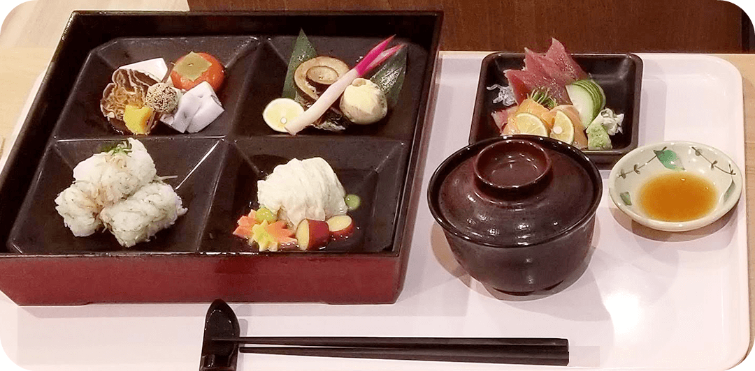味・食感・彩りに工夫を凝らした松花堂弁当が登場です! 新鮮なお刺身や旬のお野菜を使ったお料理は職員にも大好評。 次回はクリスマスにおなかを空かせてお邪魔したいと思います!